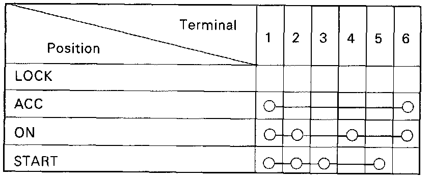 Ignition Switch Continuity Table