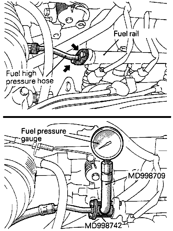 1. Release residual pressure from the fuel pipe line to prevent fuel gush out.Fuel Pressure Test: