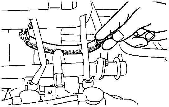 12. Racing the engine repeatedly, hold the fuel return hose lightly with fingers to feel that fuel pressure is present in the return hose.
