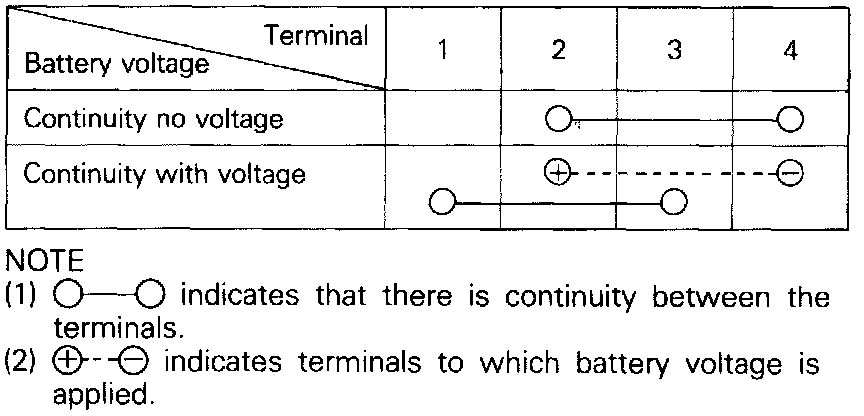 2. Check for continuity between terminals under the coinditions described above.