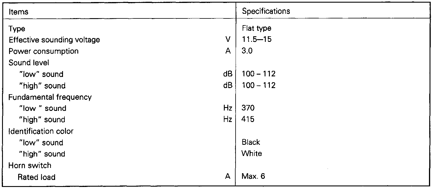 Horn System Specifications: