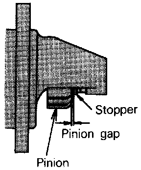 4. Check pinion to stopper clearance (pinion gap) with a feeler gauge.
