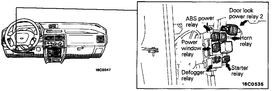 ABS Power, Door Lock Power, Defogger, Horn, Power Window, And Starter Relays: