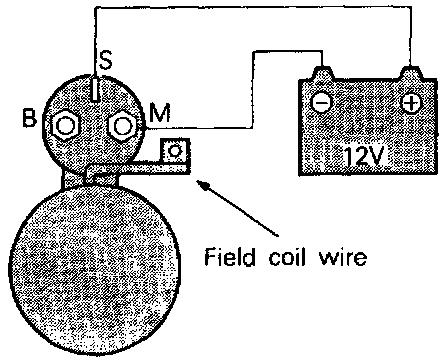 1. Disconnect field coil wire from M-terminal of magnetic switch.