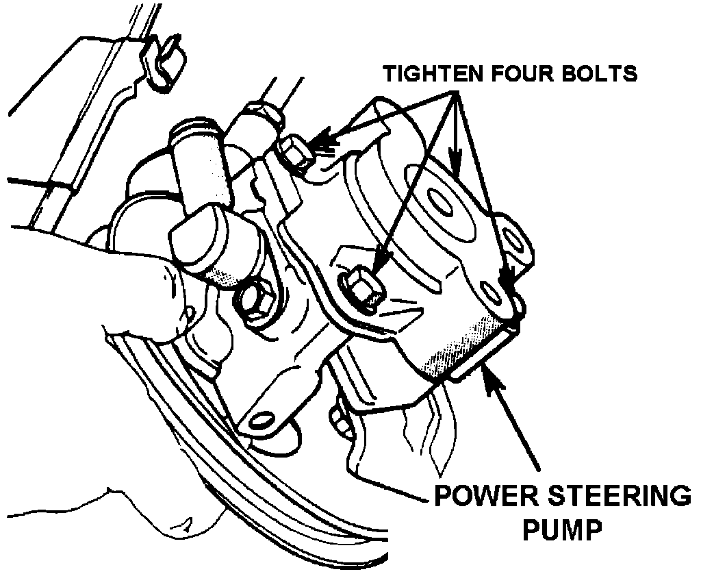 4. Tighten the four power steering pump housing bolts to 243 In.Lbs. (27 N-m). See Illustration.