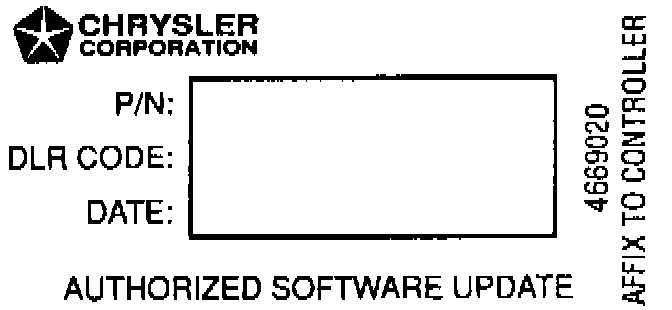 9. Type the necessary information on the "Authorized Software Update" label, P/N 4669020. Attach the label to the PCM and cover the label with the clear plastic overlay.