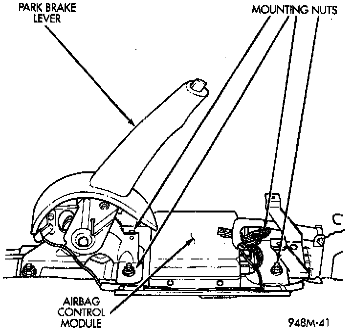 WARNING: The ACM contains a safing sensor which enables the system to deploy the airbags. To avoid accidental deployment, never connect ACM electrically to the system while vehicle battery is connected. Disconnect and isolate the battery negative (ground) cable before beginning any airbag system component removal or installation procedure. This will disable the airbag system. Failure to disconnect battery could result in accidental airbag deployment and possible personal injury. Allow system capacitor to discharge for 2 minutes before removing any airbag components.REMOVAL