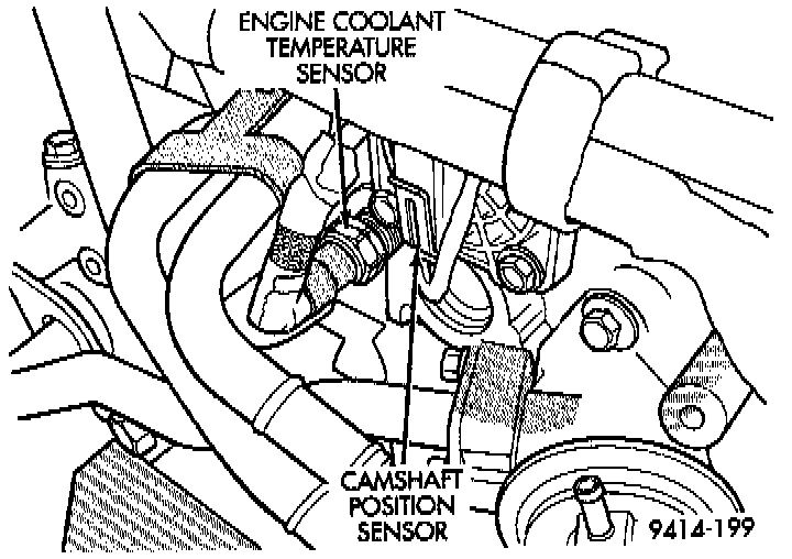 NOTE: The combination engine coolant sensor is located at the rear of the cylinder head next to the camshaft position sensor (Fig. 11).