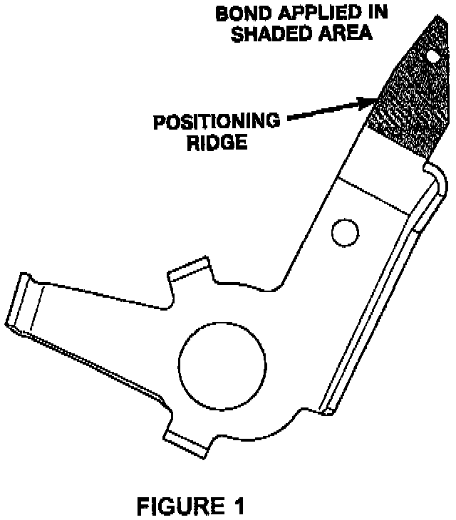 2. Apply the Mopar Bond All Gel (P/N 4467709) around the tip of the lever. Insure that the small pin on lever is covered with the bonding agent. Figure 1