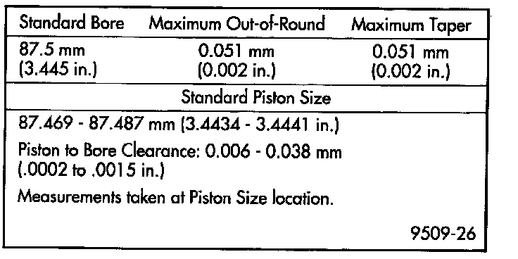 The cylinder walls should be checked for out-of- round and taper with Tool C-119. The cylinder bore out-of-round is 0.050 mm (.002 inch) maximum and cylinder bore taper is 0.051 mm (0.002 inch) maximum. If the cylinder walls are badly scuffed or scored, the cylinder block should be rebored and honed, and new pistons and rings fitted. Whatever type of boring equipment is used, boring and honing operation should be closely coordinated with the fitting of pistons and rings in order that specified clearances may be maintained. Refer to Honing Cylinder Bores.