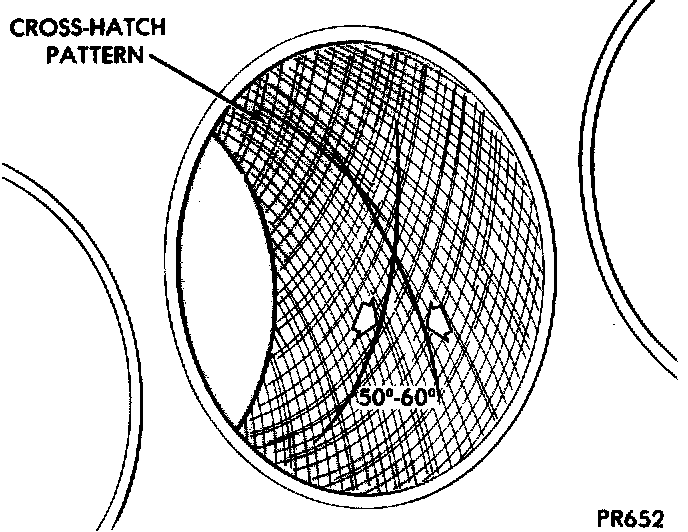 3. Honing should be done by moving the hone up and down fast enough to get a cross-hatch pattern. When hone marks intersect at 50-60 degrees, the cross hatch angle is most satisfactory for proper seating of rings.