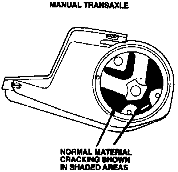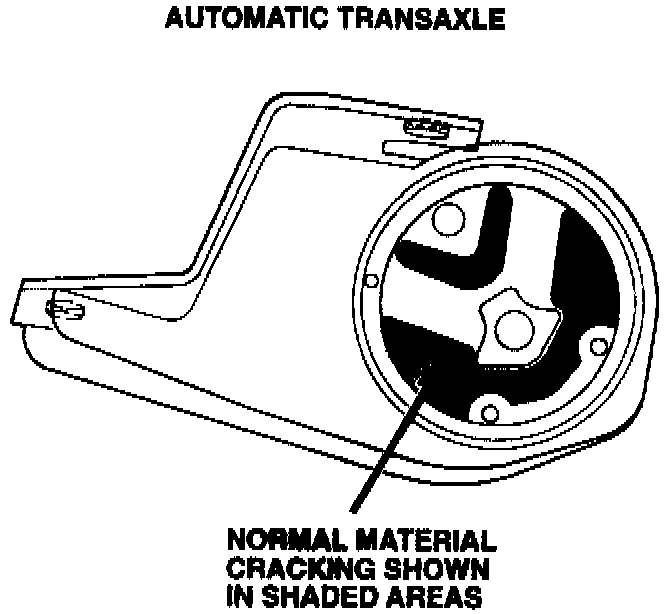 Some visible cracks in portions of the engine mount rubber isolator are also design characteristics. The rubber molding process allows excess rubber to fill in the areas around the mount legs. The excess rubber cracks due to the normal motion of the engine mount. The shading in figures 1 and 2 show the areas where cracks are allowable. The cracks do not affect the durability or function of the parts.