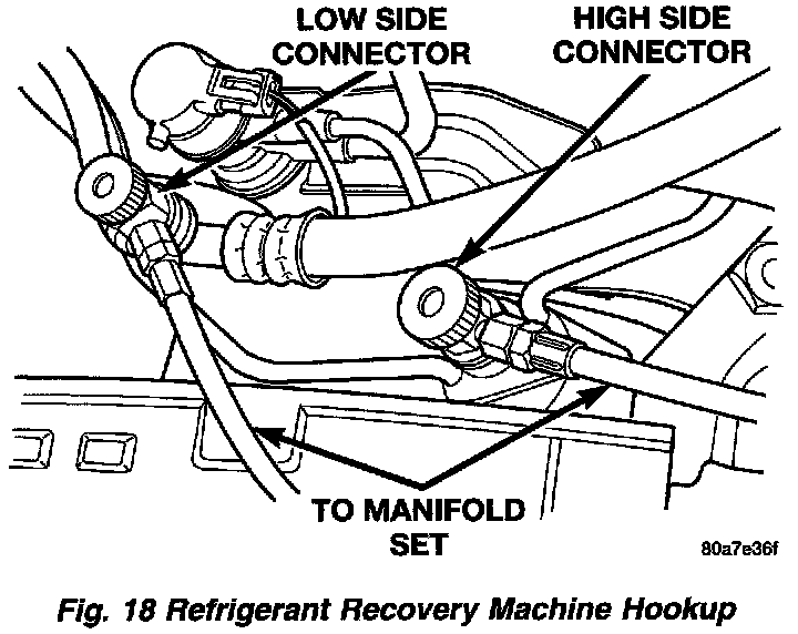 A manifold gauge set must also be used in conjunction with the charging and/or recovery/recycling device. Only use gauges that have not been used for R-12. The service hoses on the gauge set should have manual (turn wheel) or automatic back flow valves at the service poft connector ends. This will prevent refrigerant R-134a from being released into the atmosphere.