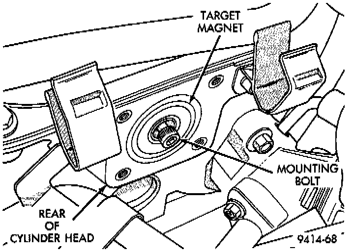 NOTE: The target magnet has a locating dowel that fits into a machined locating hole in end of the camshaft.