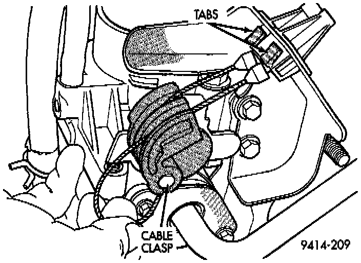4. Remove retainer clip from throttle cable and grommet at the dash panel (Fig. 2).