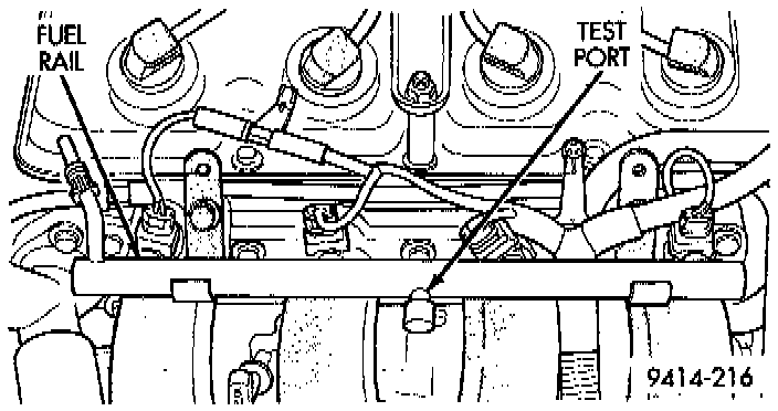 NOTE: The fuel system operates at approximately 331 kPa (48 psi). Check fuel system pressure at the test port on the fuel rail (Fig. 18).