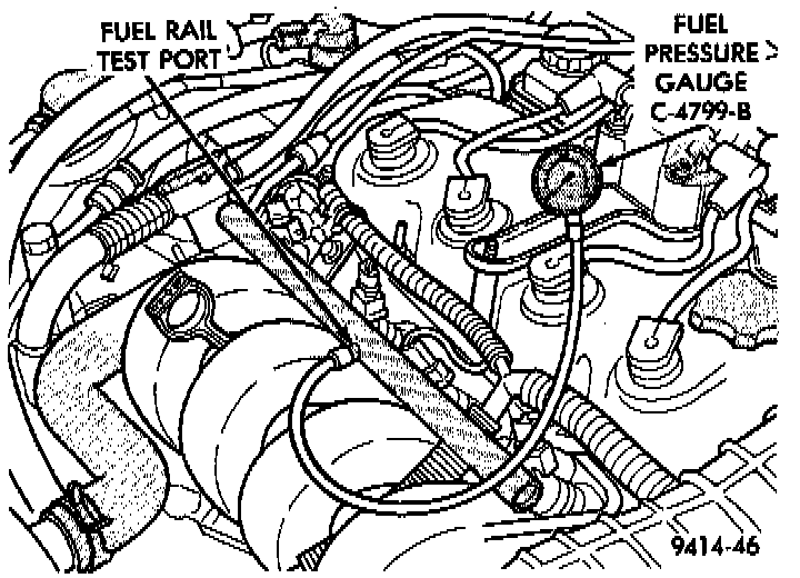 NOTE: If fuel pressure is below specifications, refer to the diagnosis chart below for Fuel Pressure Below Specifications.
