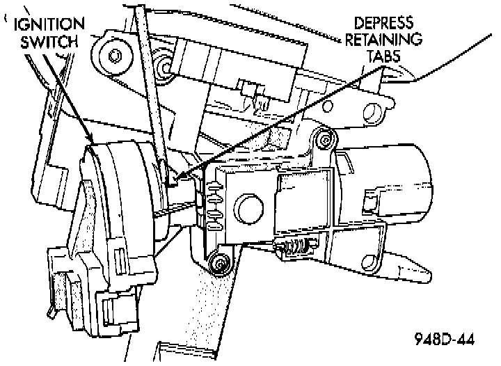 6. Depress retaining tabs and pull ignition switch from steering column.