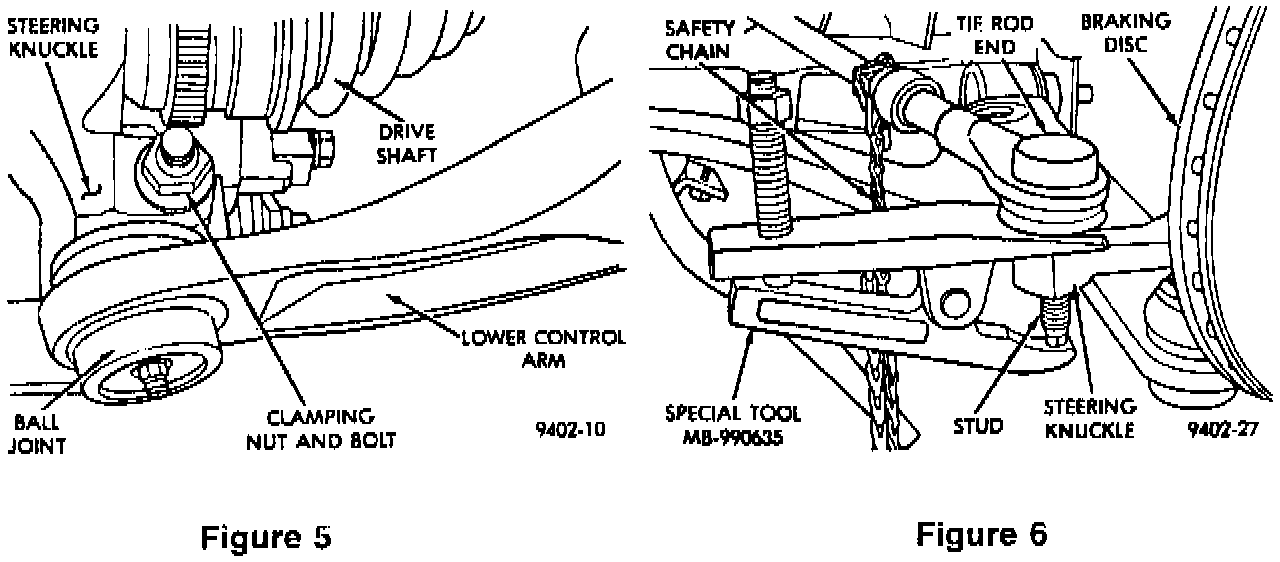 10. Use Special Tool MB 990635 to remove the tie rod end stud from the steering knuckle (Refer to Figure 5).