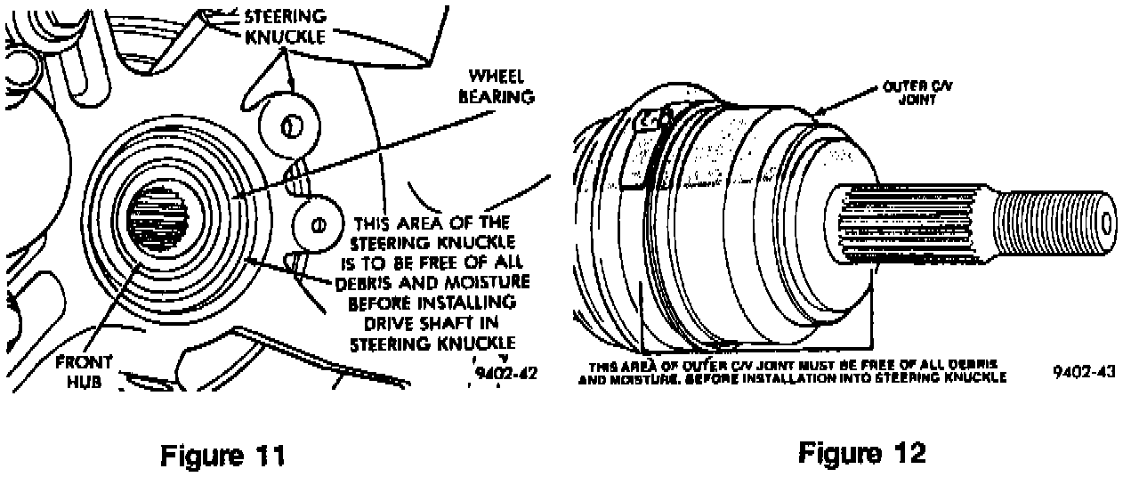 21. Clean any debris and moisture from the driveshaft C/V joint before assembling it into the steering knuckle (Refer to Figure 12).