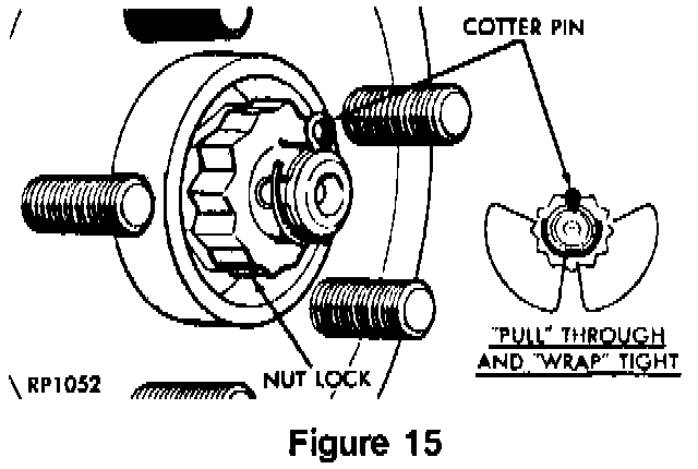 31. Install the spring washer, hub nut lock and new cotter pin (Refer to Figure 15).