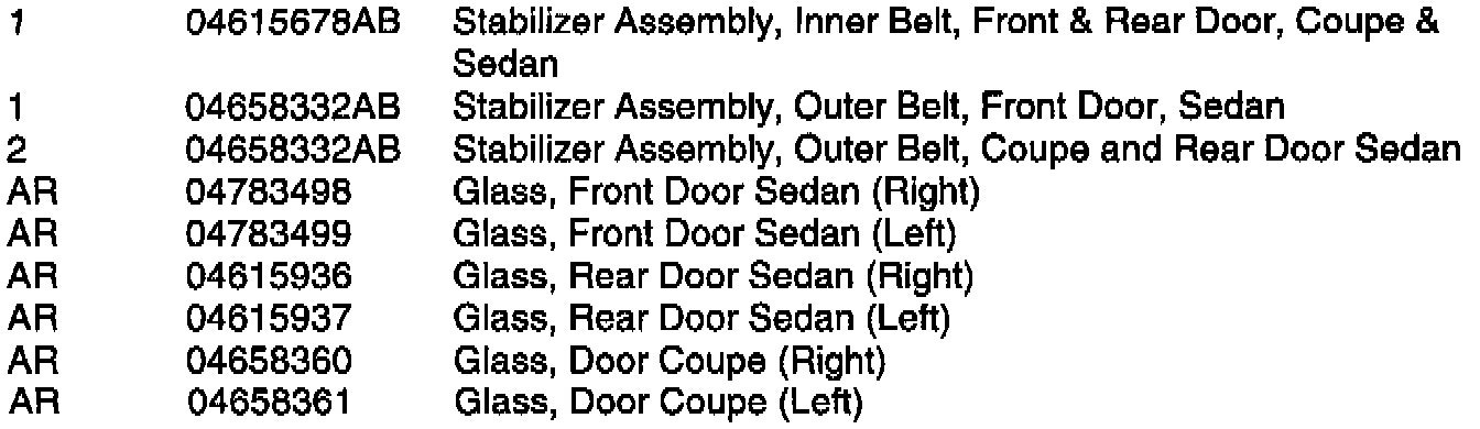 Inspect the door glass, if scratch runs up the glass in line with the stabilizer location (Figure 1 & 2), perform the repair procedure.
