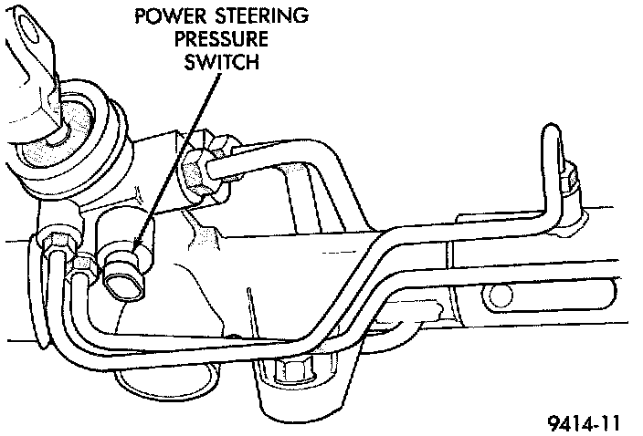 A pressure sensing switch is located on the power steering gear. The switch (Fig. 16) provides an input to the PCM during periods of high pump load and low engine RPM; such as during parking maneuvers.