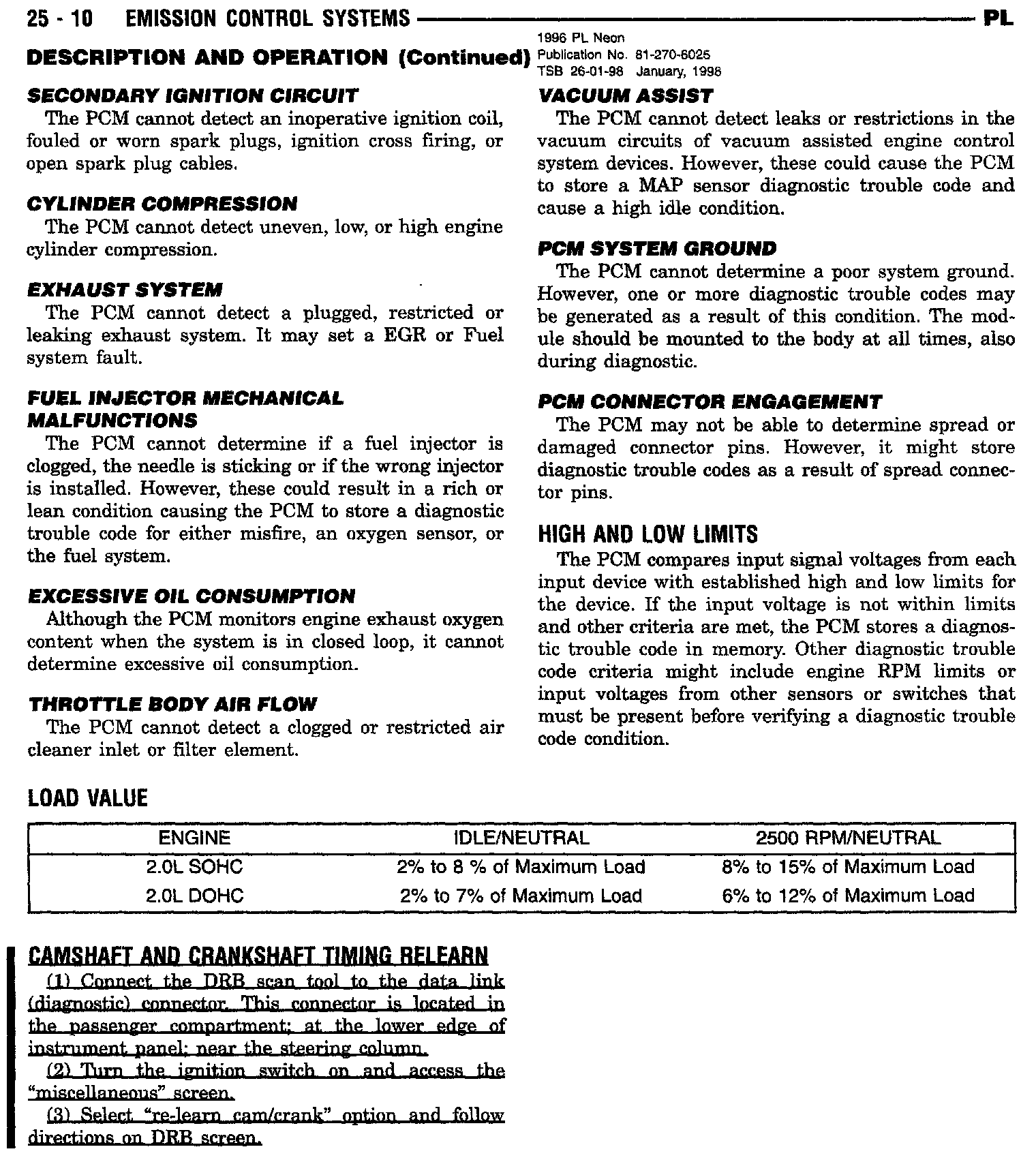 1996 Neon Service Manual - Publication Number 81-270-6025