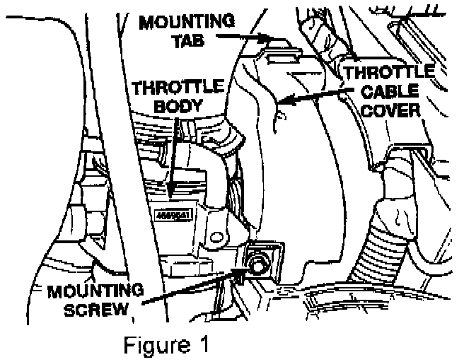 1. Remove throttle position sensor from the throttle body by removing the two attaching screws. The attaching screws should be discarded. Replacement screws will be provided with the new throttle position sensor.