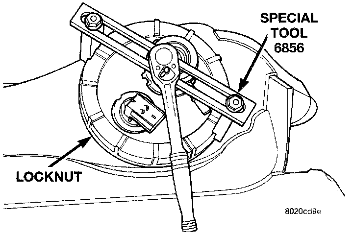 4. Tighten the locknut using Special Tool 6856 to 55 Nm (40.5 ft lb) (Fig. 17).