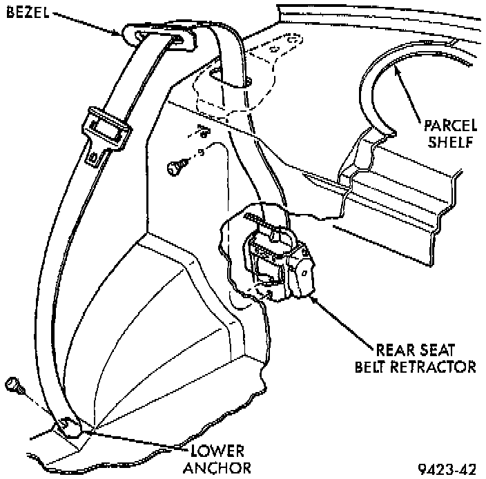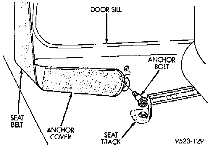 Reverse the preceding operation. Tighten seat belt anchor bolt to 39 Nm (29 ft. lbs.).