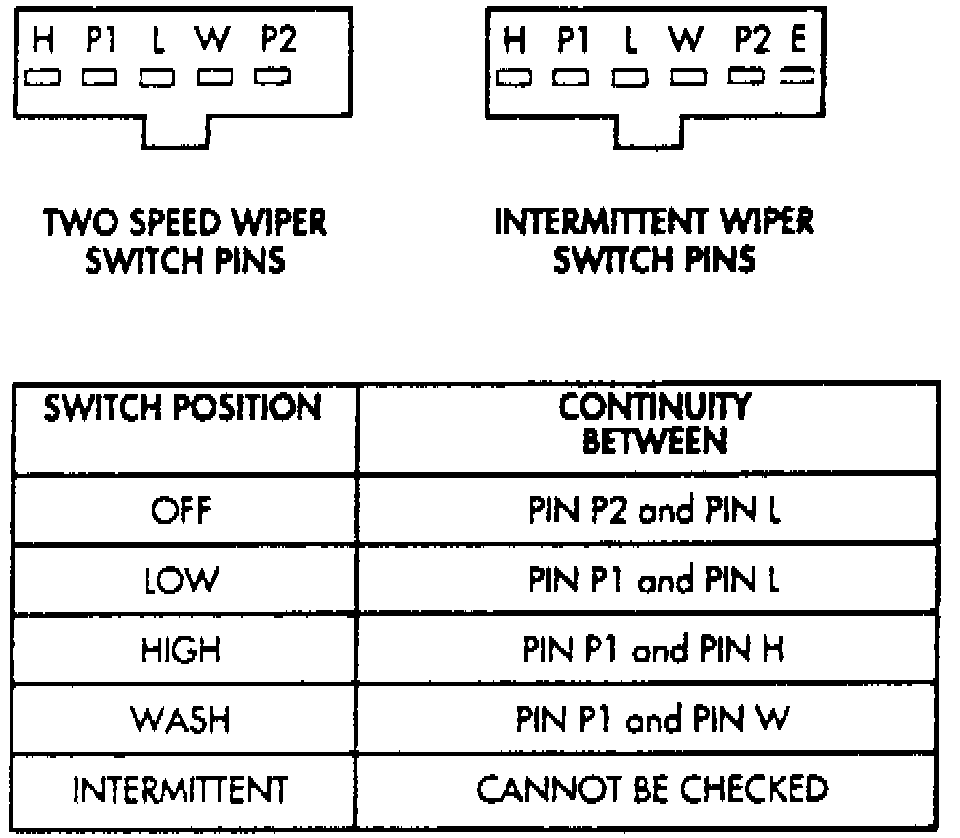 Using a suitable ohmmeter test continuity between connector pins as shown.