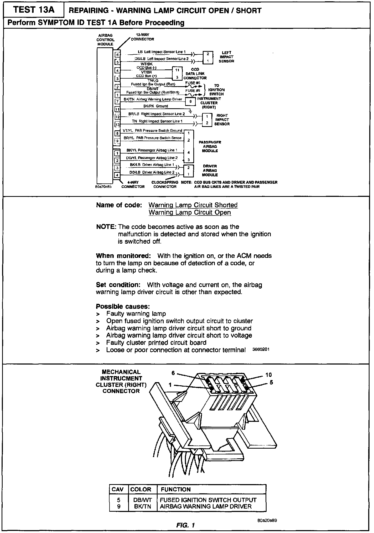 13A Repairing Warning Lamp Open/Shorted