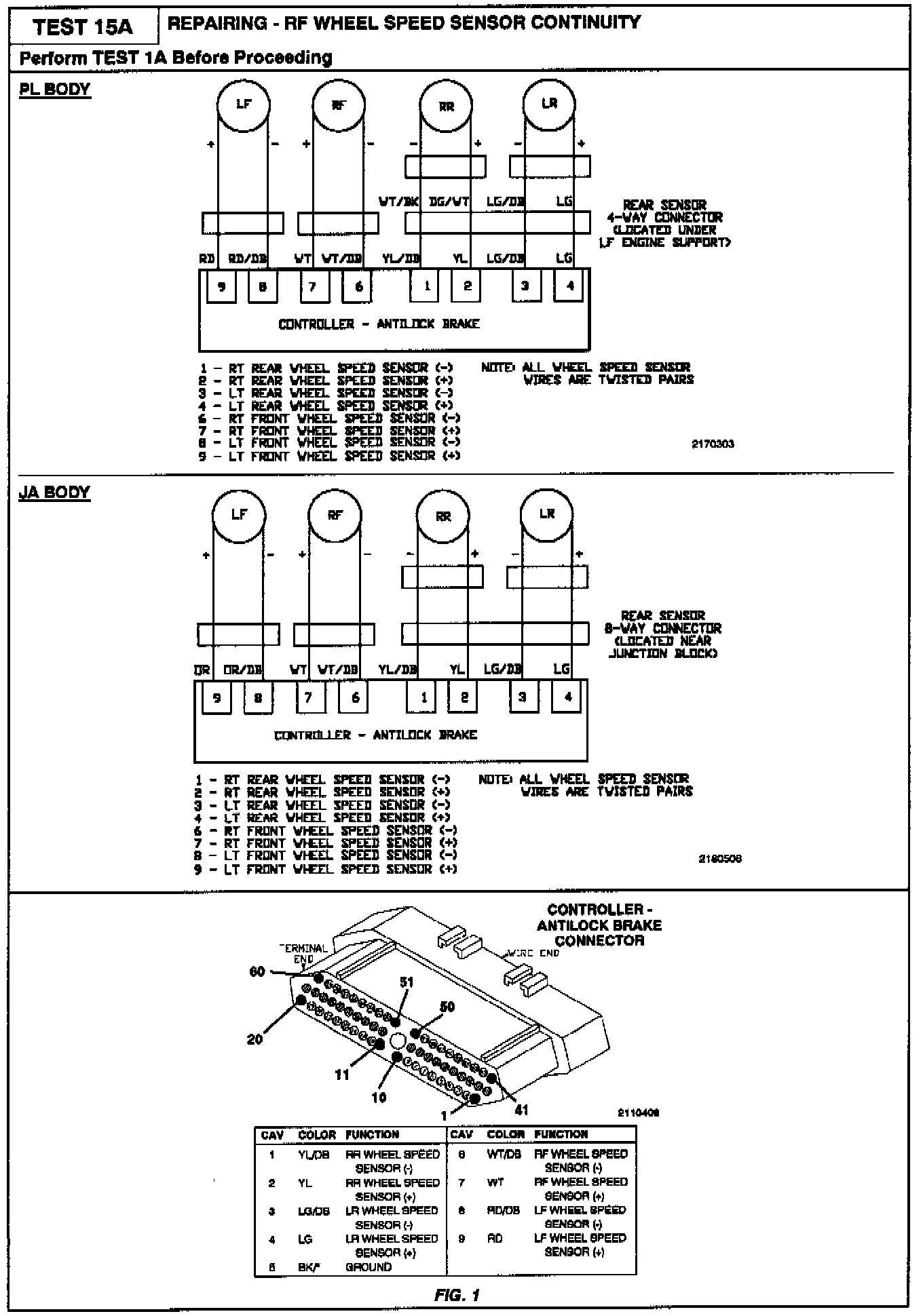 Test 15A - Right Front Wheel Speed Sensor Continuity Fault
