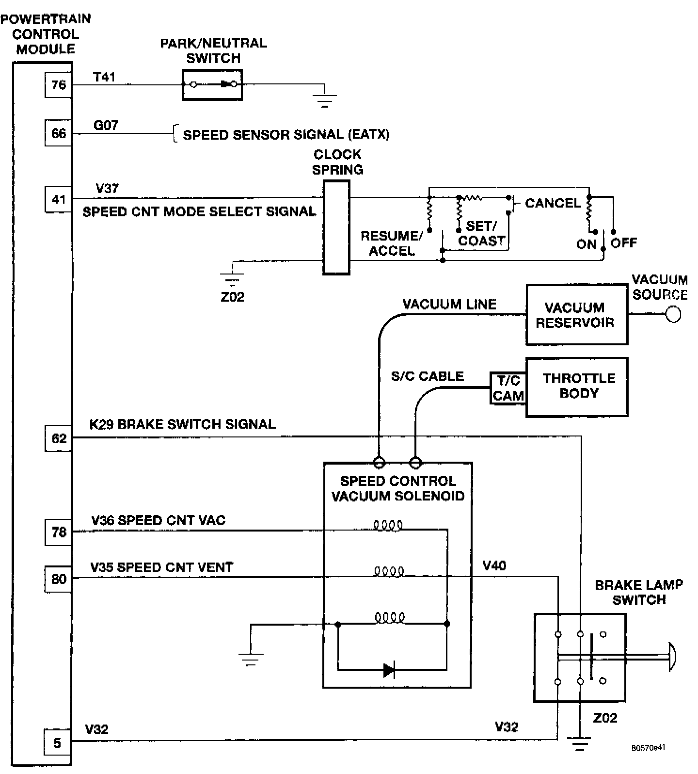 - This schematic is included here to show the vacuum for the vehicle speed control system.