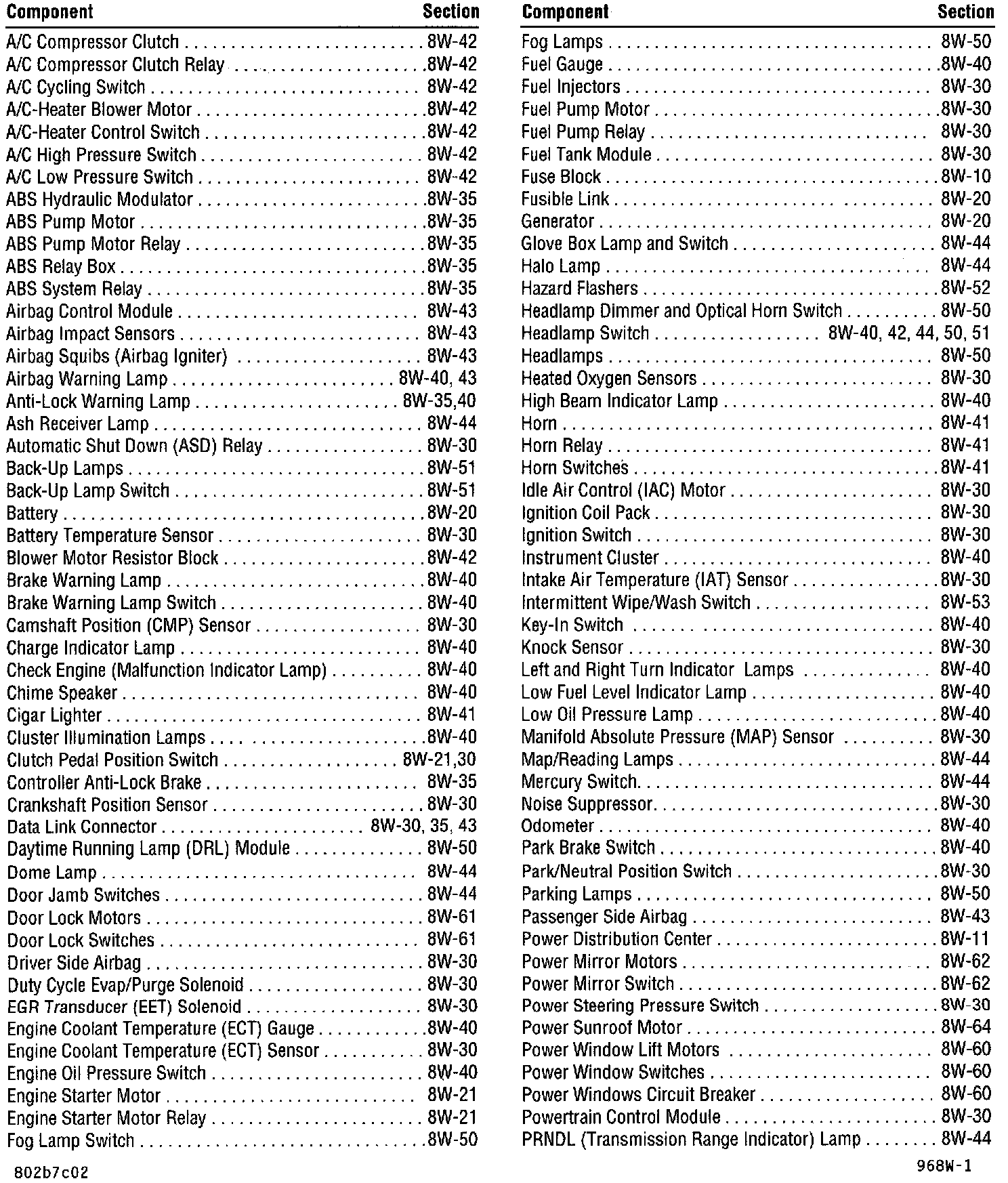 Group 8W-02 Component Index