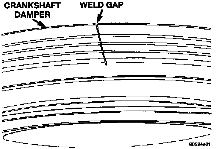 NOTE: If a gap is found in the crankshaft damper, in the area where the Poly-V Generator belt rides this is normal and is acceptable.