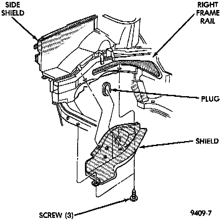 3. Raise vehicle on hoist and install right inner splash shield.