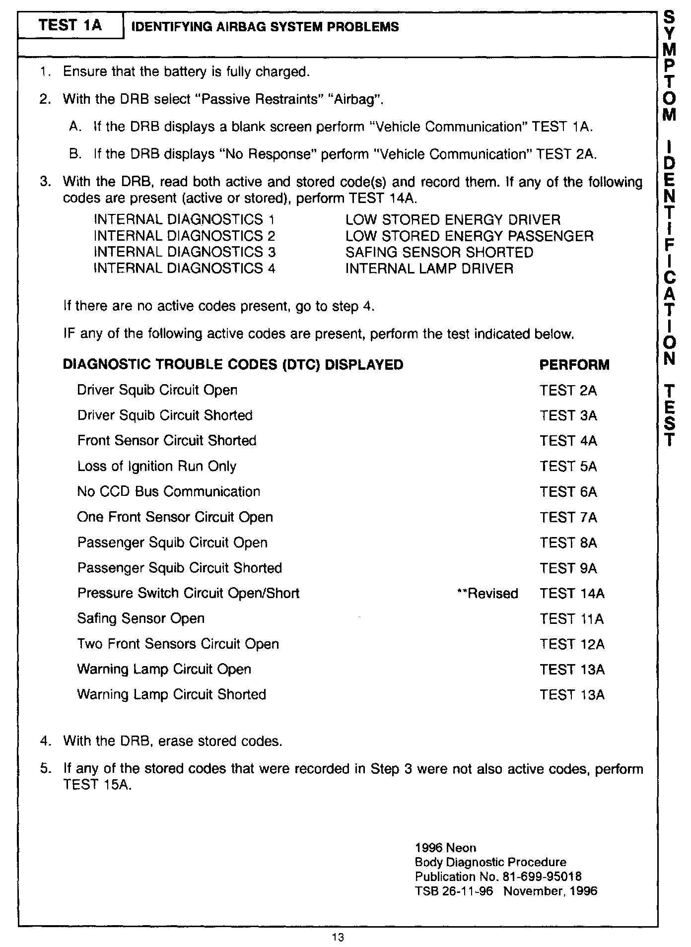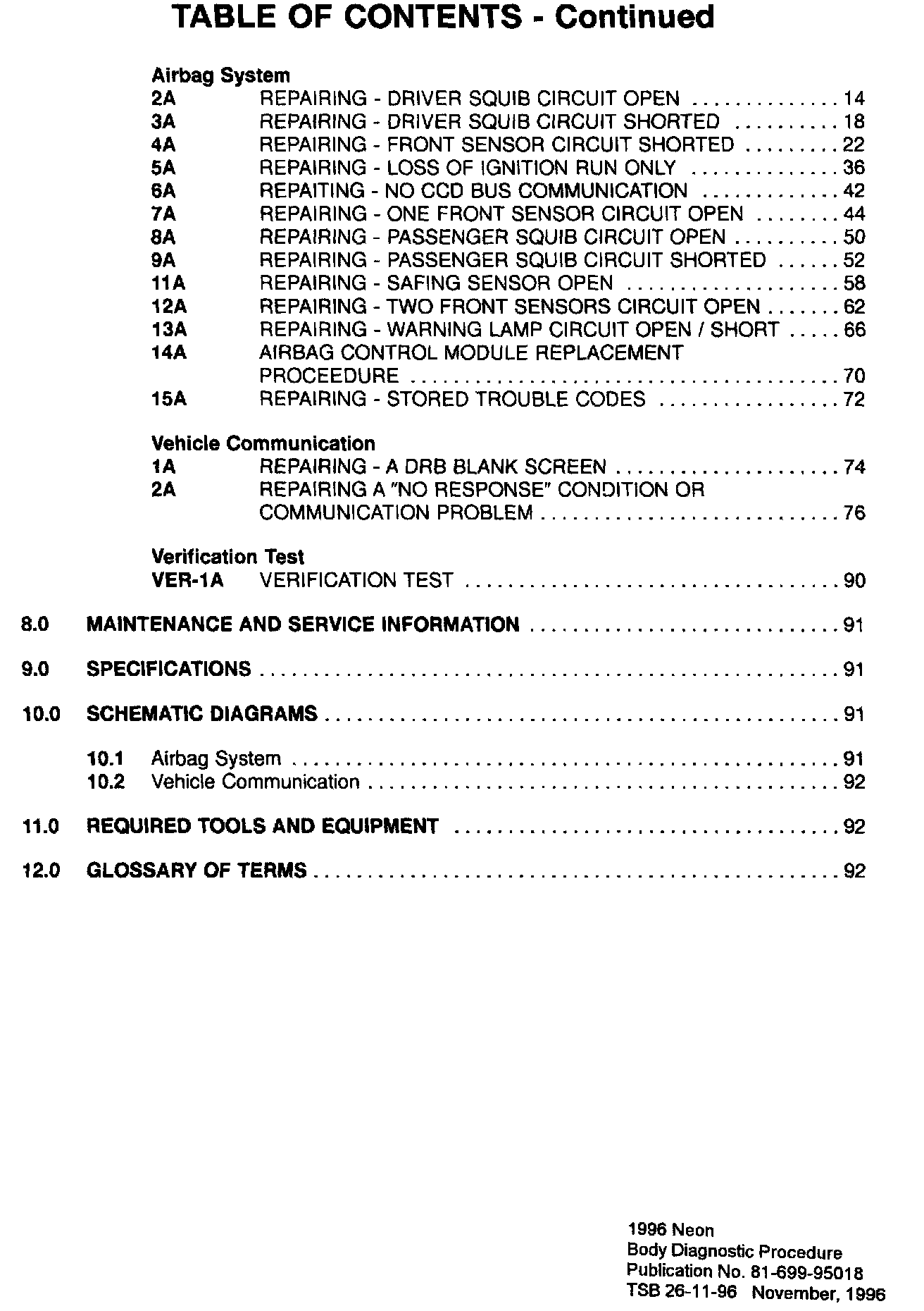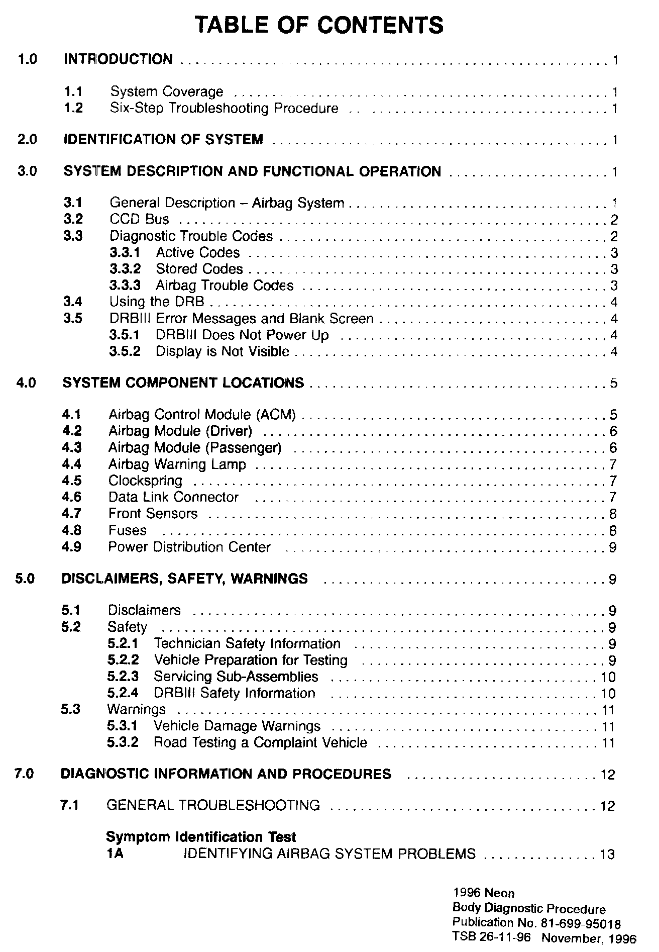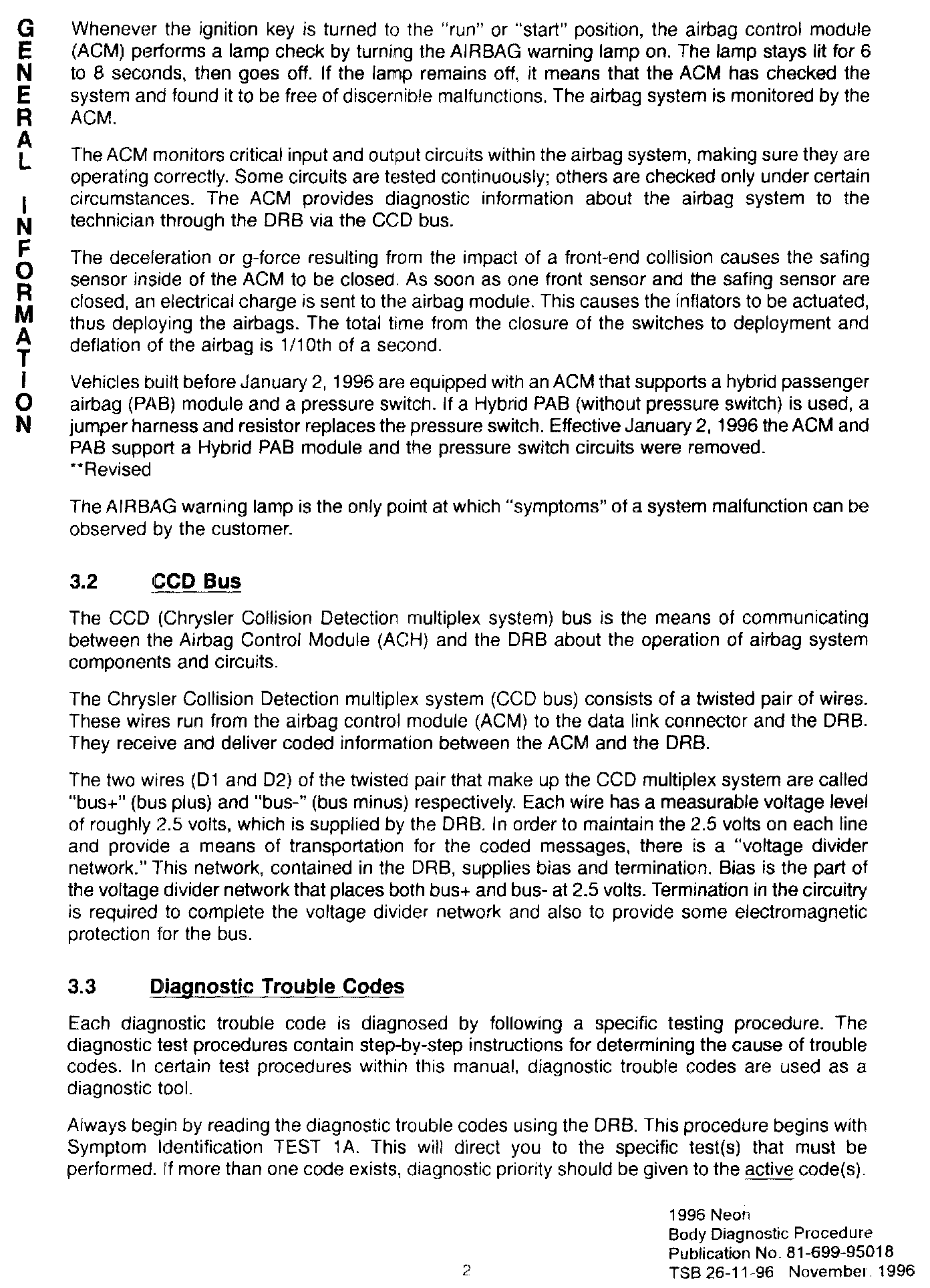 1996 Neon Body Diagnostic Manual - Publication Number 81-699-95018