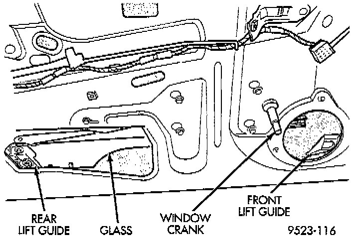 7. Separate rear guide plate from door glass.