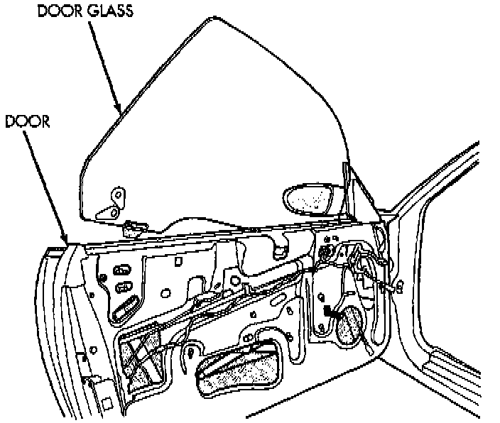 4. Lower door glass to bottom of travel to access glass attachment bolts.