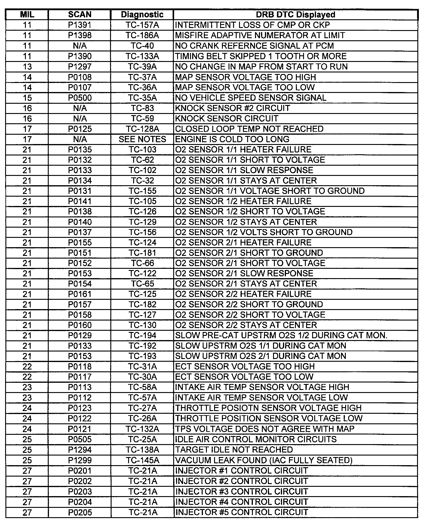 A L L Diagnostic Trouble Codes ( DTC )
