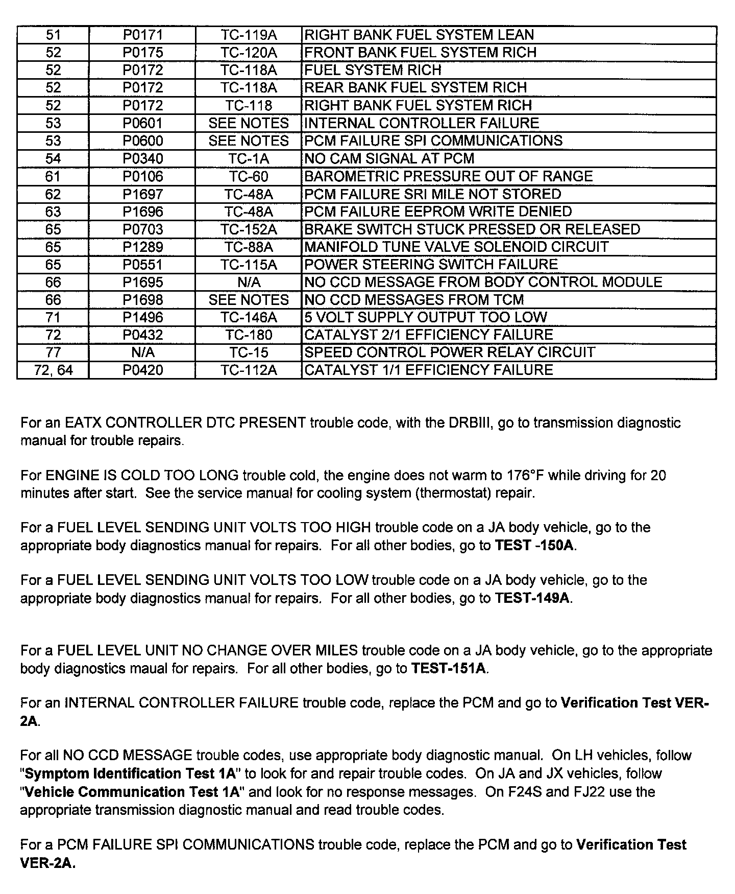 2 Digit Codes 52 - 77 (Includes Notes):