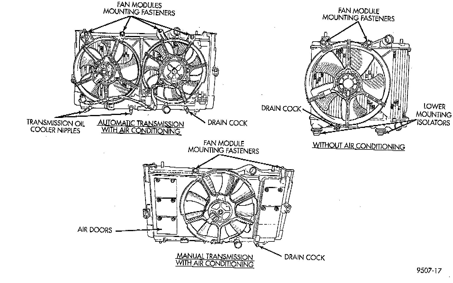 The radiator is a down-flow type (vertical tubes) with design features that provide greater strength, as well as sufficient heat transfer capabilities to keep the engine satisfactorily cooled.