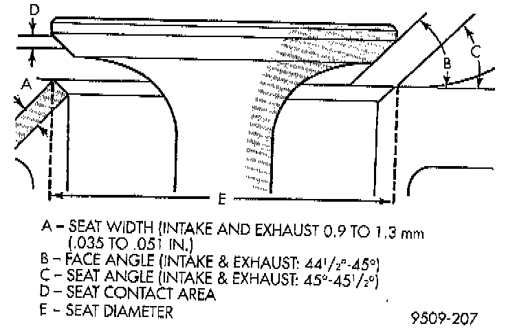5. When seat is properly positioned the width of intake and exhaust seats should be 0.75 - 1.25 mm (0.030 - 0.049 inch).