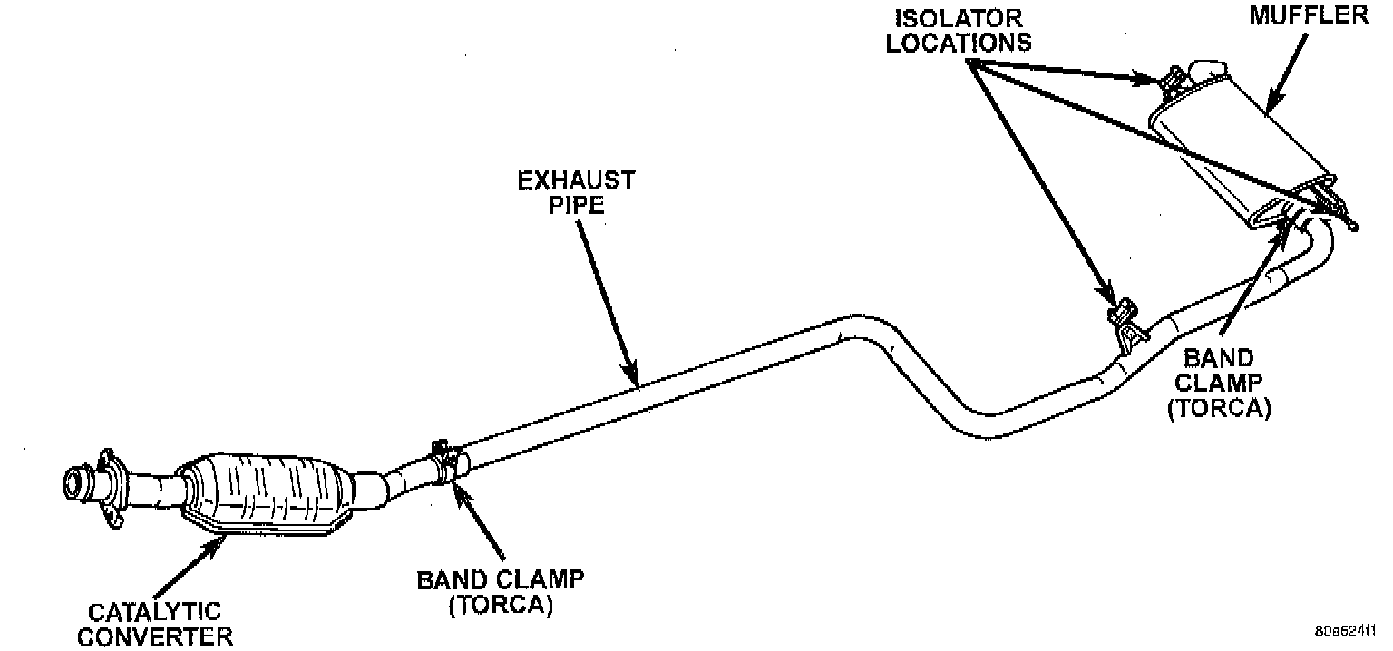 The exhaust system has an underfloor catalytic converter, tail pipe, and muffler.
