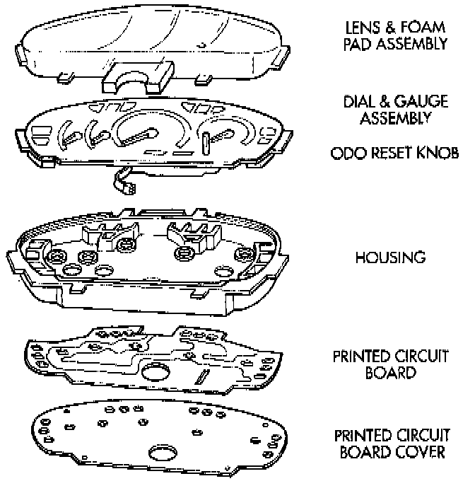 - For installation reverse the above procedures. Carefully place board on the cluster and ensure that the odometer connector is placed through the board. Gently press board on cluster with a slight rocking motion to ensure pins on gauges line up.