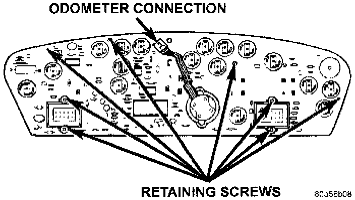 3. Disconnect the odometer connector and remove eight attaching screws that attach the printed circuit board and housing.