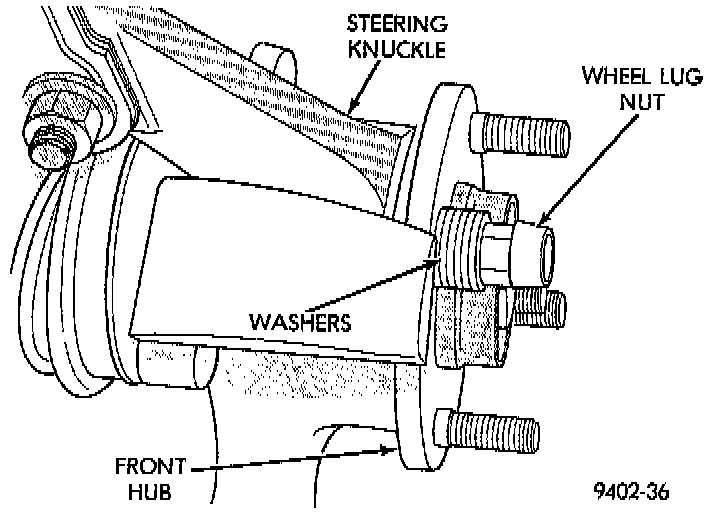 - The hub and bearing assembly does not require removal from the steering knuckle to replace wheel attaching studs in the hub and bearing assembly.