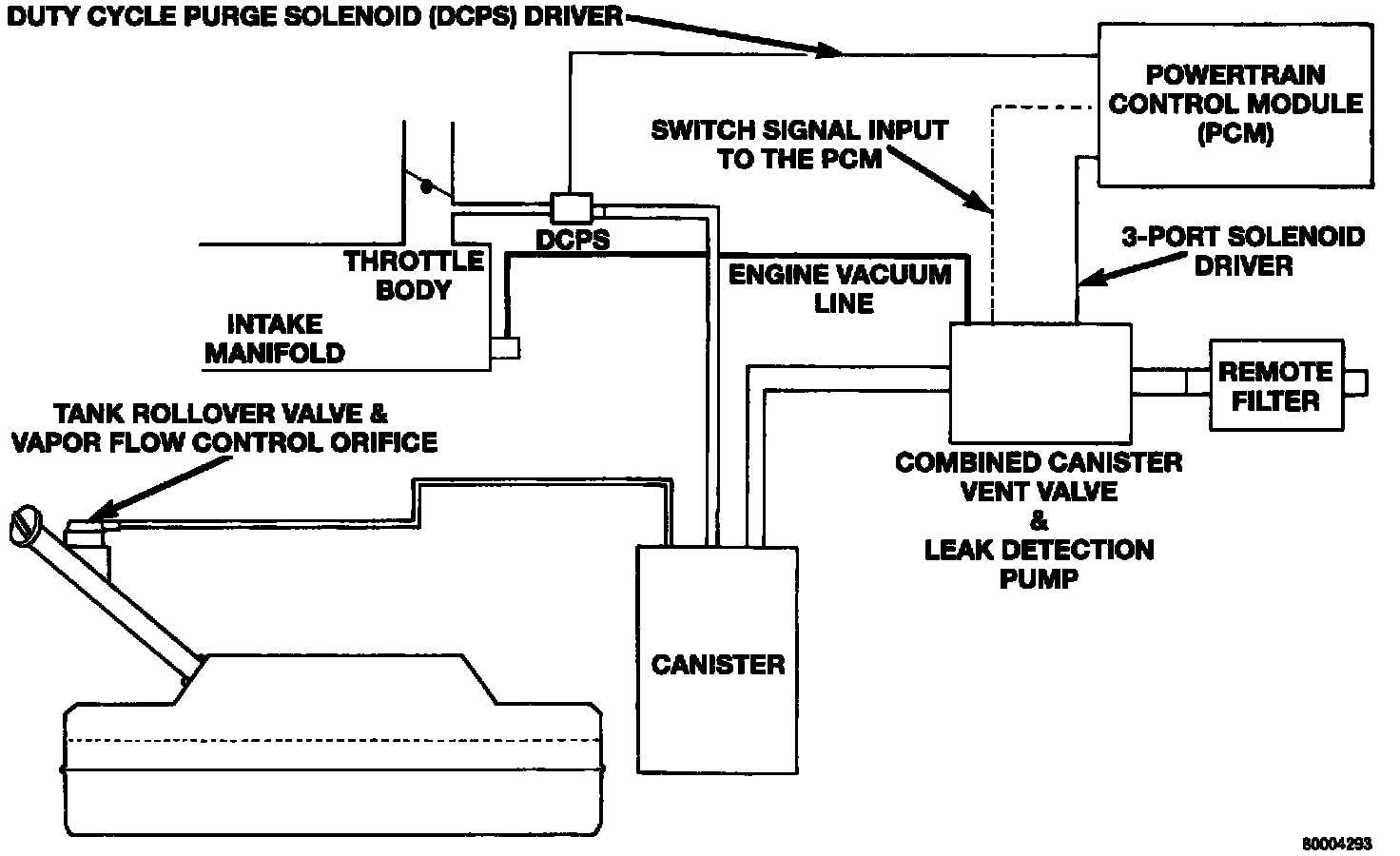 The Powertrain Control Module (PCM) controls the ground path for the leak detection pump solenoid and leak detection pump switch.